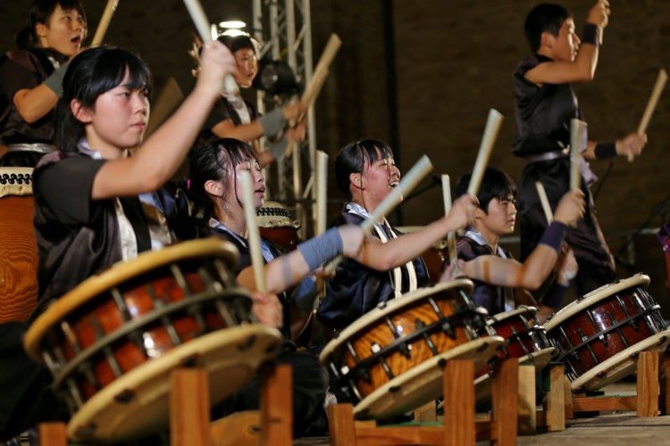 Folkloregruppen aus aller Welt nehmen am internationalen Folklorefestival teil.