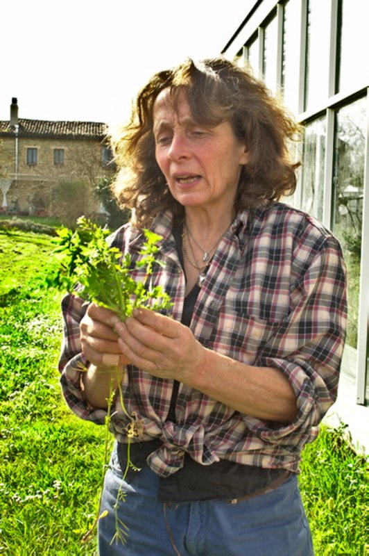 Zunächst folgt ein Spaziergang auf ihrem Grundstück rund um das Haus. Je nach Jahreszeit weist sie auf die essbaren Wildpflanzen hin und erklärt deren Eigenschaften.