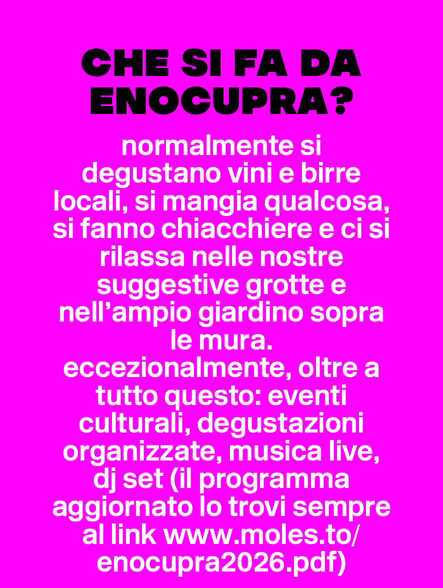 www.moles.to/enocupra2026.pdf è il calendario aperture 2026 (in continuo aggiornamento!)