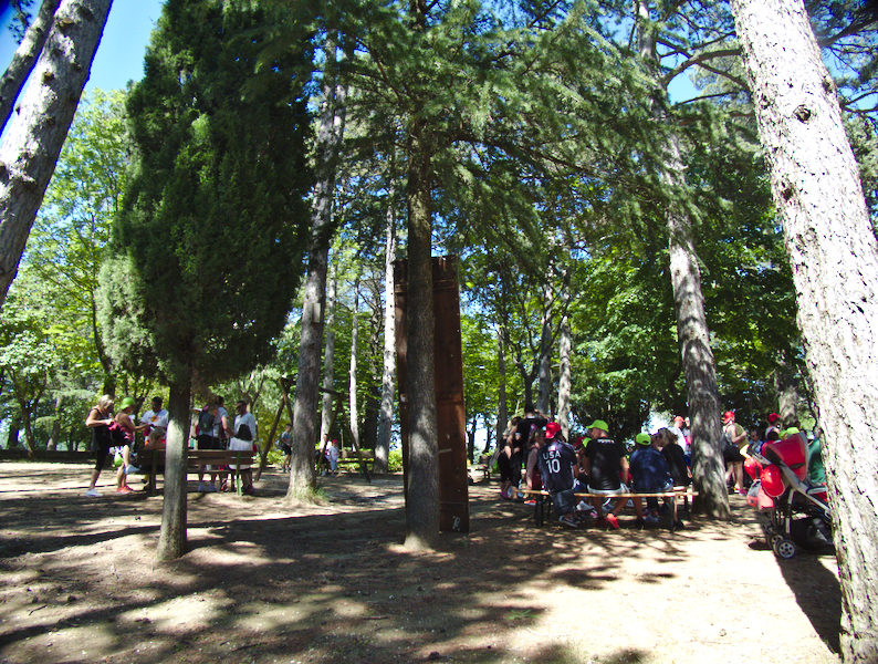 Il secondo piatto viene servito al Parco Colle Elisa, piacevolmente all’ombra. Mentre i bambini si divertono, gli adulti possono mangiare carne e verdure arrostite.
