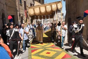 Fino a che punto un villaggio di 5000 abitanti può essere impegnato in una manifestazione religiosa? Moltissimo, se la cerimonia religiosa di cui parliamo è la Festa del Corpus Domini (il giovedì dopo la domenica della Trinità), la cui celebrazione si svolge solitamente la domenica successiva. E il paese è Cupramontana.