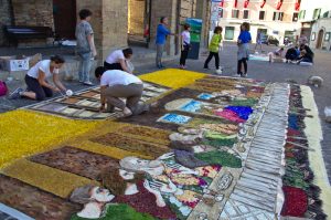 Quando inizia la processione, è solo il Santo Corpus Domini che può camminare sul tappeto (e, naturalmente, il sacerdote con Esso): le persone camminano poi a lato del tappeto stesso.