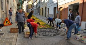 In questo paesino nel cuore delle verdi colline marchigiane, la preparazione della festa inizia settimane, o addirittura mesi prima, e vi partecipano dal più giovane al più anziano cittadino. Tutto inizia con gli studenti delle scuole medie locali che sotto l'occhio esperto dell'eccezionale professoressa d'arte, Rita Uncini, disegnano i motivi che possono essere scelti per la celebrazione. Ma di cosa parla la celebrazione?